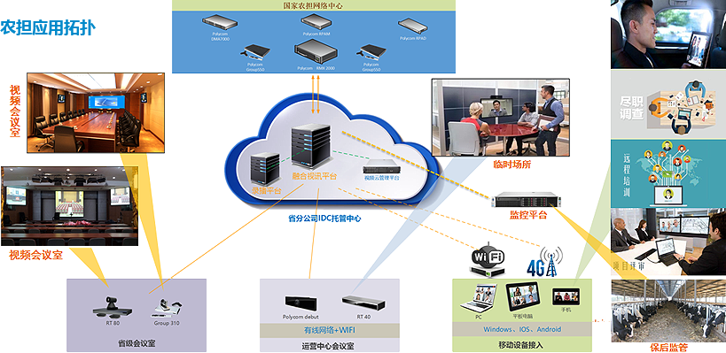 實(shí)現(xiàn)與國家農(nóng)擔(dān)總部Polycom視頻會(huì)議系統(tǒng)互聯(lián)互通;